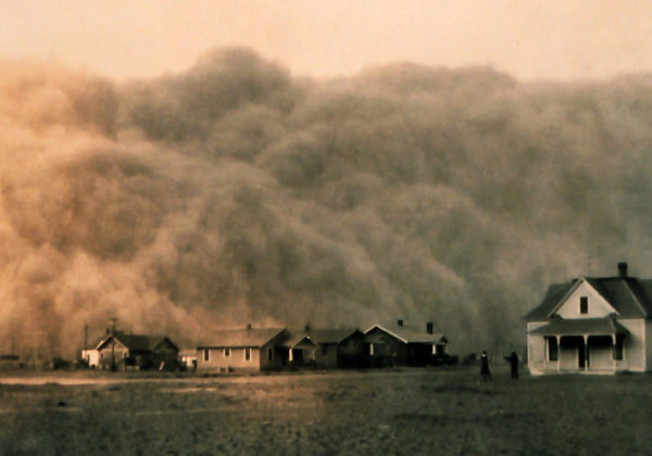 Great roiling windstorms blow clouds of dust in from the northern plains and turn the sky blood red. The impoverished dirt farmers can see them coming 20 miles away but are helpless to do anything but run for cover....